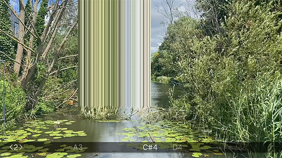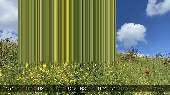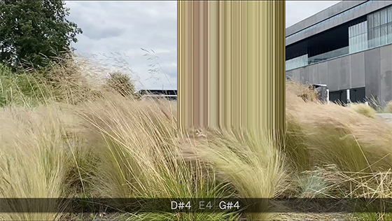 Глитч я использую отчасти и по визуально-эстетическим причинам — мне хотелось сделать изображение менее реалистичным, чем-то напоминающим сон. Но в какой-то момент я подумал о том, что было бы интересно создать ситуацию взаимодействия с ним «змея», — я представляю себе глитч как пять линеек нотного стана, как музыкальный холст, и если «змей» попадает в это поле, то музыканты могут на это отреагировать. В инструкции для исполнителей сказано, что музыканты должны следить за всплывающим «змеем», связанным с одной из нот, обозначенных на видео, — и затем могут управлять звуком в зависимости от движения «змея». Исполнители могут работать и с ситуацией, когда «змей» взаимодействует с глитчевой частью изображения: я рекомендую, например, добавлять в саундтрек «Orbital» посторонние шумы — хотелось бы добиться напряжения между чистым и более тревожным звуком.