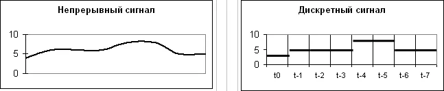 Большинство процессов в природе протекают непрерывно — например, меняется температура, давление или влажность воздуха, сила тока в проводнике, интенсивность света. Непрерывные процессы, функции и сигналы называются аналоговыми.