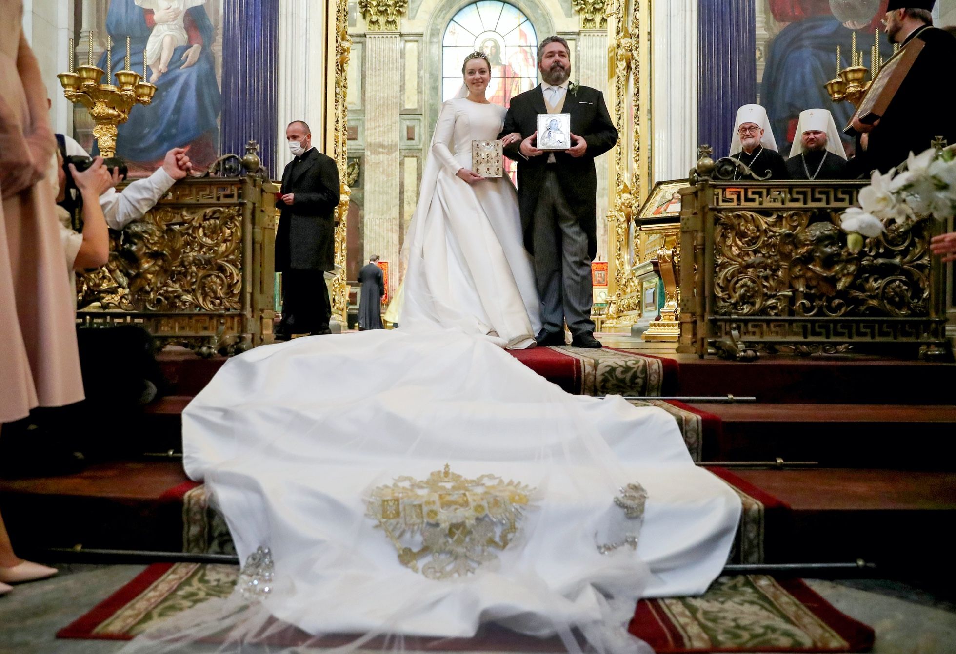 Pyotr Kovalev / TASS / Scanpix / LETA Grand Duke George Mikhailovich Romanov and his Italian fiancée Victoria Romanova Bettarini tied the knot at St. Isaac’s Cathedral in St. Petersburg on Friday, October 1. George Romanov is the son of Russian Grand Duchess Maria Romanova and Prussian Prince Franz Wilhelm of Hohenzollern. His mother is the granddaughter of Grand Duke Kirill Vladimirovich, a first cousin of Nicholas II, Russia’s last tsar. Grand Duke Kirill Vladimirovich fled Russia during the 1917 revolution and proclaimed himself emperor-in-exile in 1924. Not all members of the Romanov family recognized his claim, and hence his descendents’ claim, to the throne. Victoria Bettarini is the daughter of an Italian diplomat. She converted to the Russian Orthodox faith in 2020 and took the name Victoria Romanova. George Romanov and his wife have been involved in educational and charitable projects in Russia for the past few years. Their marriage marks the first royal wedding to take place in Russia in more than 100 years.