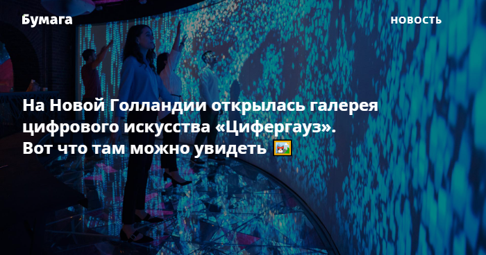 В историческом здании «Дом 12» на Новой Голландии начала работу галерея цифрового искусства «Цифергауз». Об этом «Бумаге» сообщили в компании «Газпром нефть», которая запустила площадку.