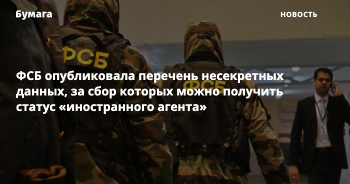 ФСБ опубликовала перечень несекретных данных, за сбор которых можно получить статус «иностранного агента»