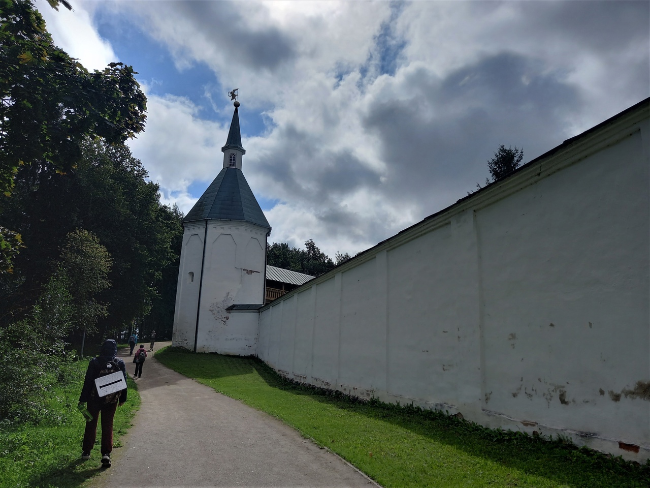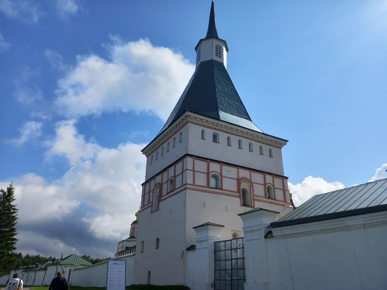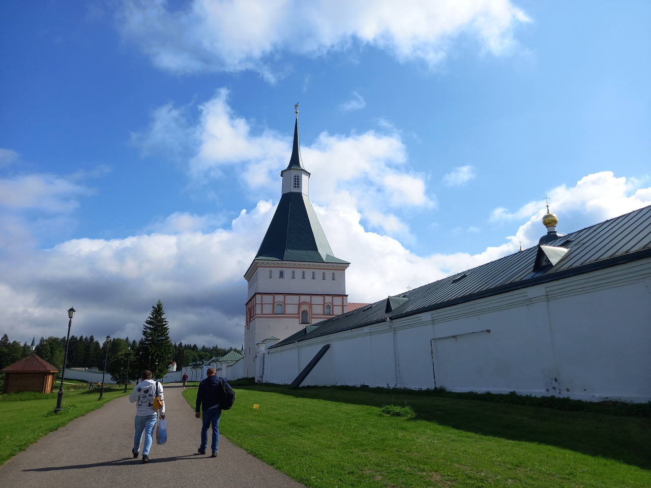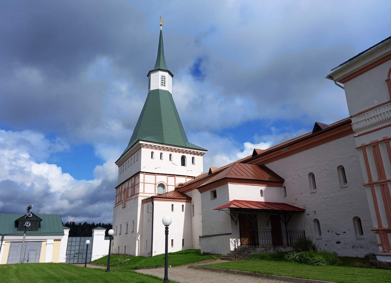 Самая красивая башня, одновременно и самая мощная. Здесь была резиденция патриарха Никона, по велению которого монастырь и был основан во второй половине XVII века, в царствование Алексея Михайловича Романова. Никон хотел создать копии всех библейских святынь на русской земле, поэтому появились Иверский монастырь здесь и Ново-Иерусалимский под Москвой, о котором я тоже писал. После опалы Никона к проекту постепенно интерес пропал, и цветущие монастыри стали приходить в упадок. Но до нас все равно дошли архитектурные шедевры той эпохи, появившиеся благодаря деятельности патриарха Никона.
