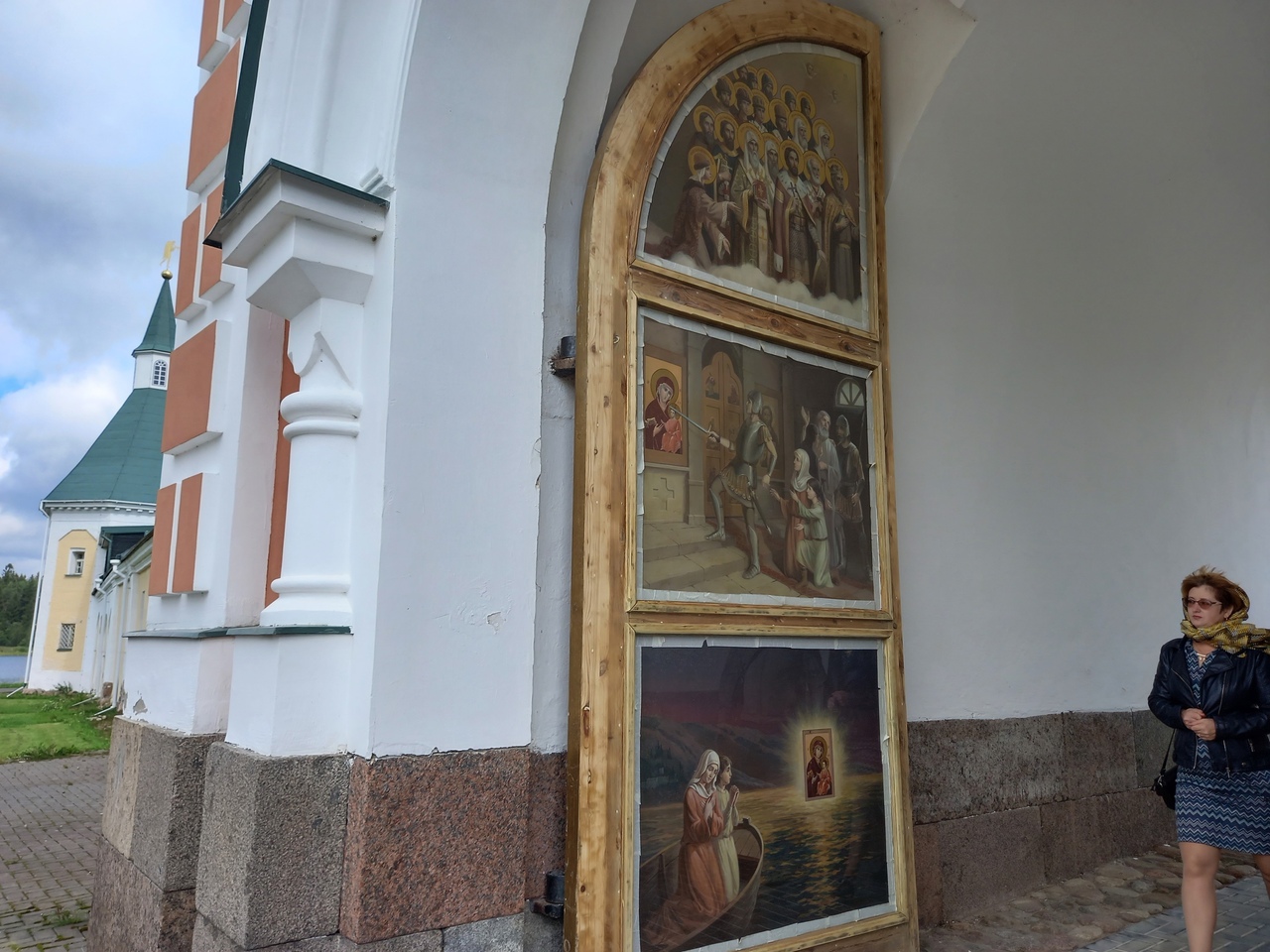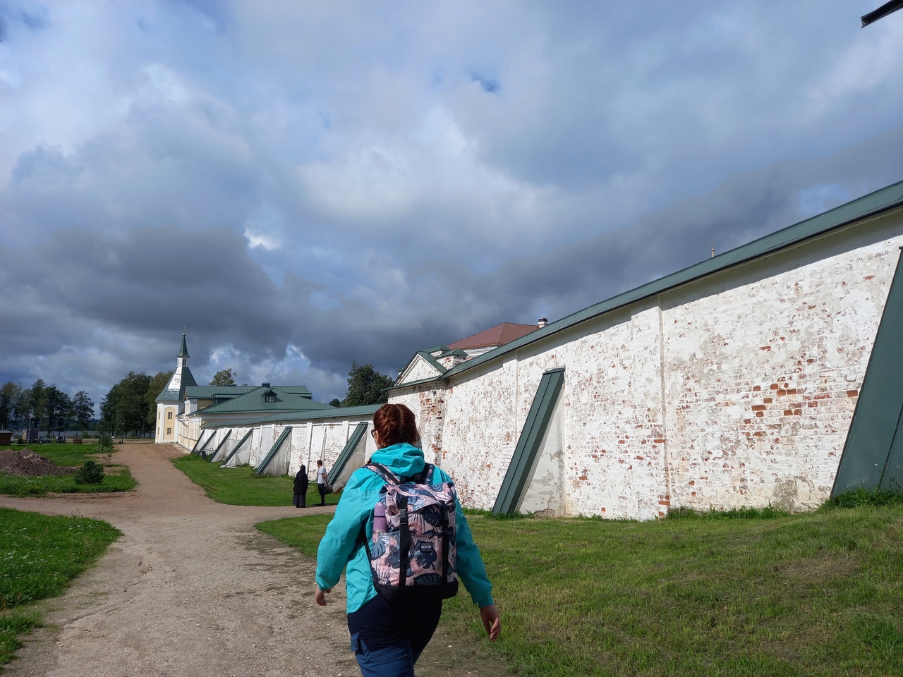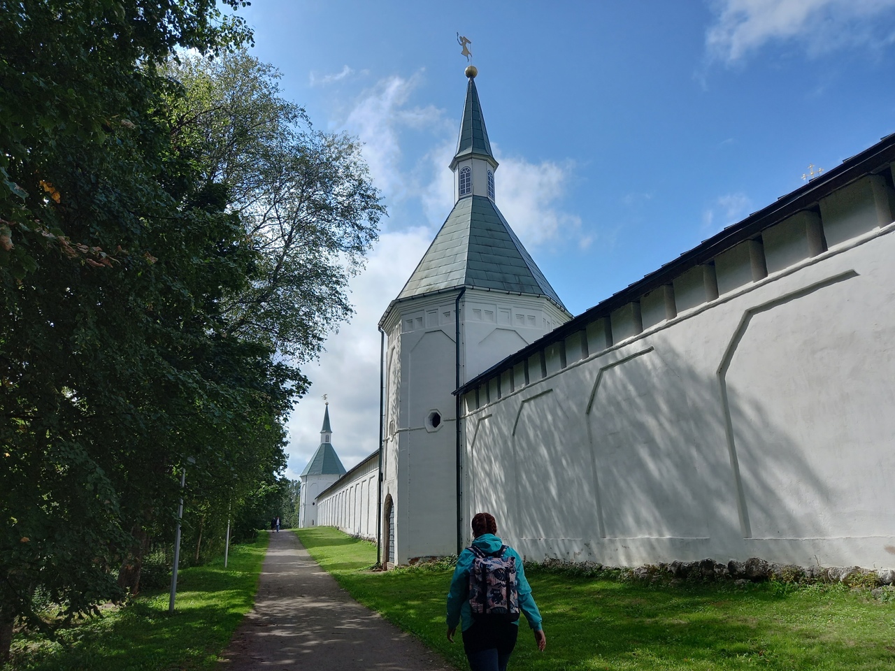 Стена идет вдоль берега озера. Напомню, что монастырь на острове.