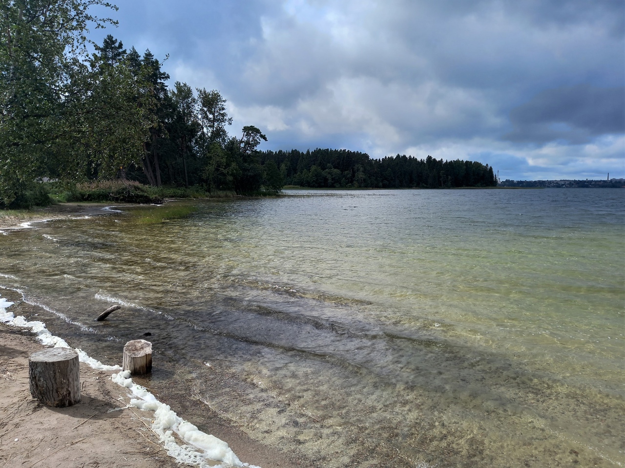 Берег с лиственными деревьями совсем не похож на обычные берега в нашем регионе. Это очень похоже на южные пляжи!