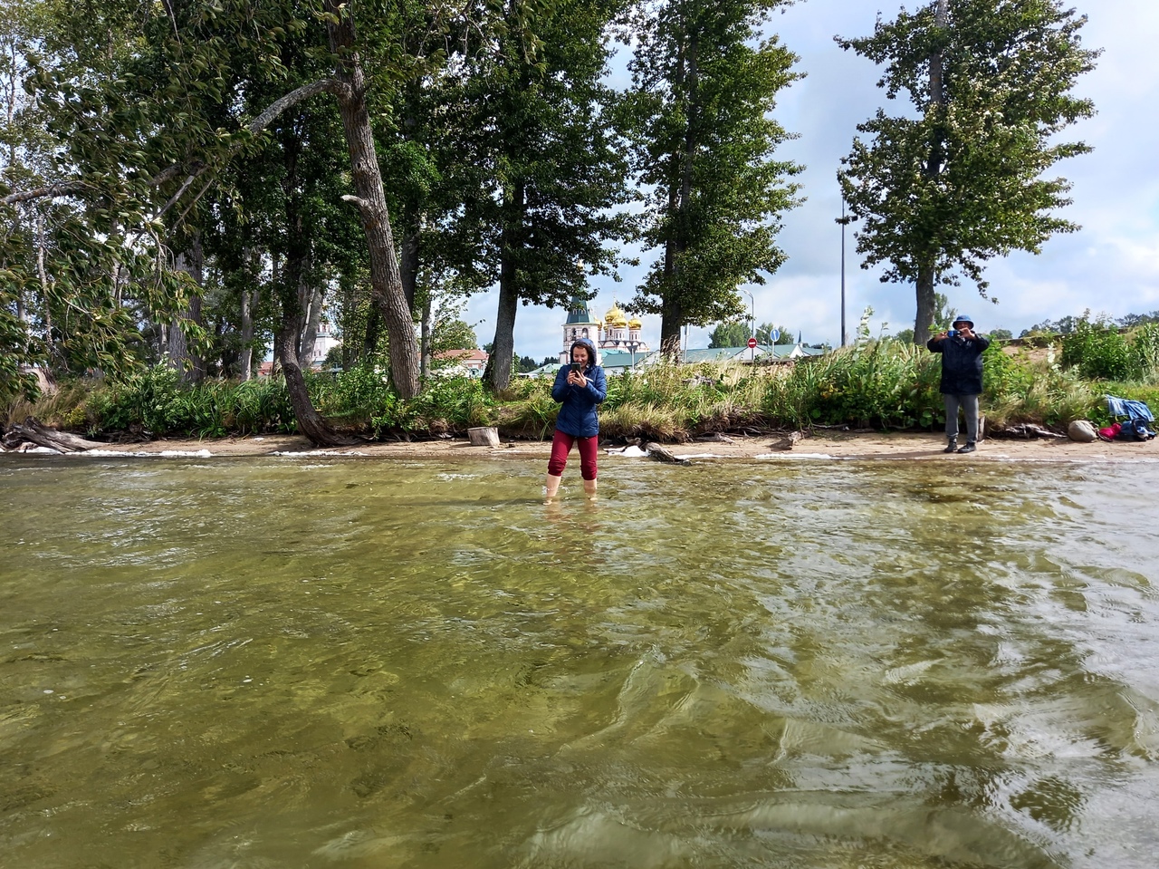 Припарковав машину возле монастыря, мы вернулись немного назад по дороге, к протоке, которая отделяет остров, на котором расположен монастырь. Возле протоки расположен пляж, который я знал еще по визиту сюда в ноябре.