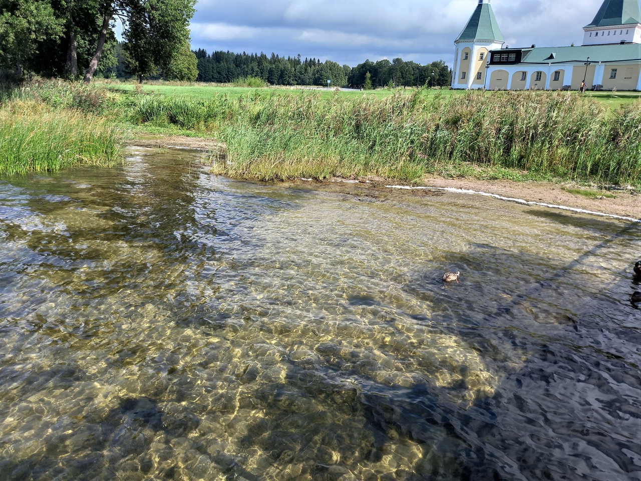 Я встречал маленькие прозрачные озера у нас в Ленинградской области, но такое большое озеро с прозрачной водой - не встречал еще ни разу! Чистота объясняется тем, что озеро наполняется водой из многочисленных родников. Кроме того, это возвышенность, и вода отсюда вытекает, а не впадает, поэтому сюда не приходят торфяные воды с болот.