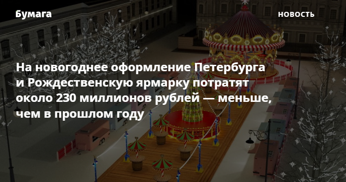 На новогоднее оформление Петербурга и Рождественскую ярмарку потратят около 230 миллионов рублей