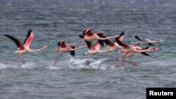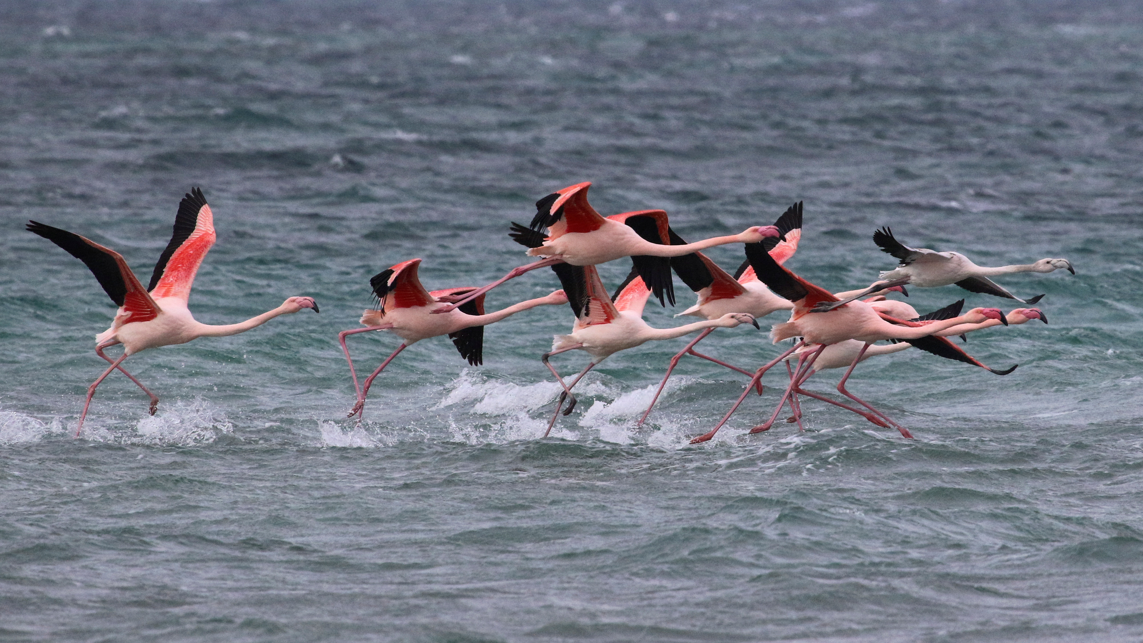 Пролетая над Крымом: стая розовых фламинго у берегов Межводного (фотогалерея)