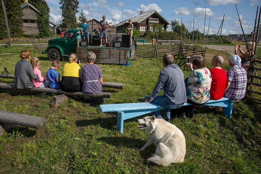 Старый ГАЗ в деревню пригнали вчера, но кажется, что он там уже вечность. В его кузове четыре квадратных метра карельского Вудстока. Рок-группа из старшеклассников играет психоделический рок из 70-х и поет псалмы под соло на балалайке. Женщина в традиционном карельском костюме гладит белого пса по покатому брюху. На сцену прыгает мужик и просит сыграть лучшую песню Цоя — «Самолет». Только эту песню никто не знает, но все соглашаются и на «Кукушку». Он двигается как Йен Кёртис под звуки перегруженных гитар. Музыка стихает: по дороге снова проехали лесовозы и Кинерму затянуло пылью.