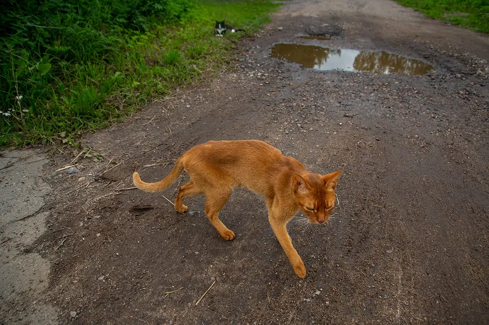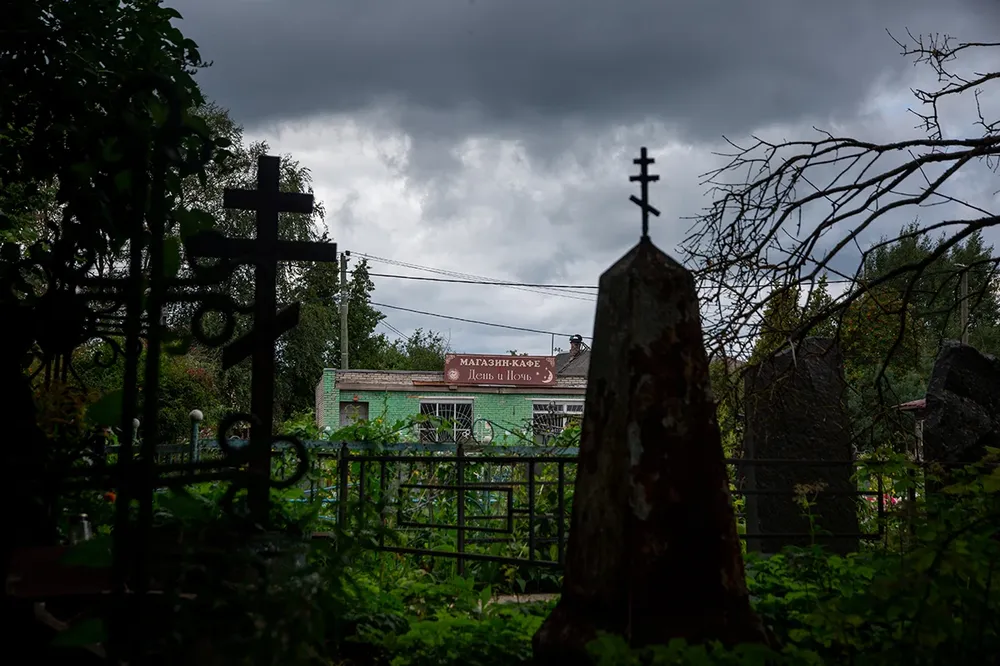 На горизонте дымит что-то промышленно тяжелое. Широкая река приносит гул с противоположного берега, а мы проезжаем вдоль кладбища. Надгробные плиты с выцветшими фотографиями умерших людей направлены в сторону давно закрытого продуктового магазина «День и ночь». Из-за мусорного бака появляется абиссинский кот, но мужчина в окне ларька с шашлыками просит его не кормить.