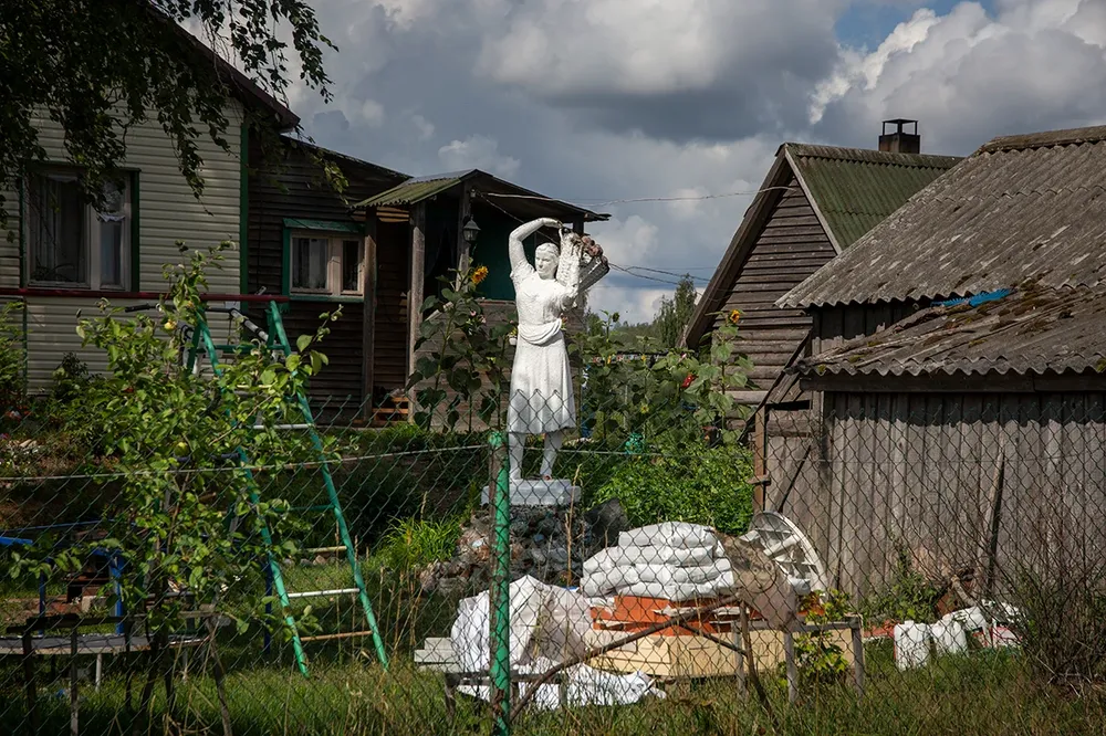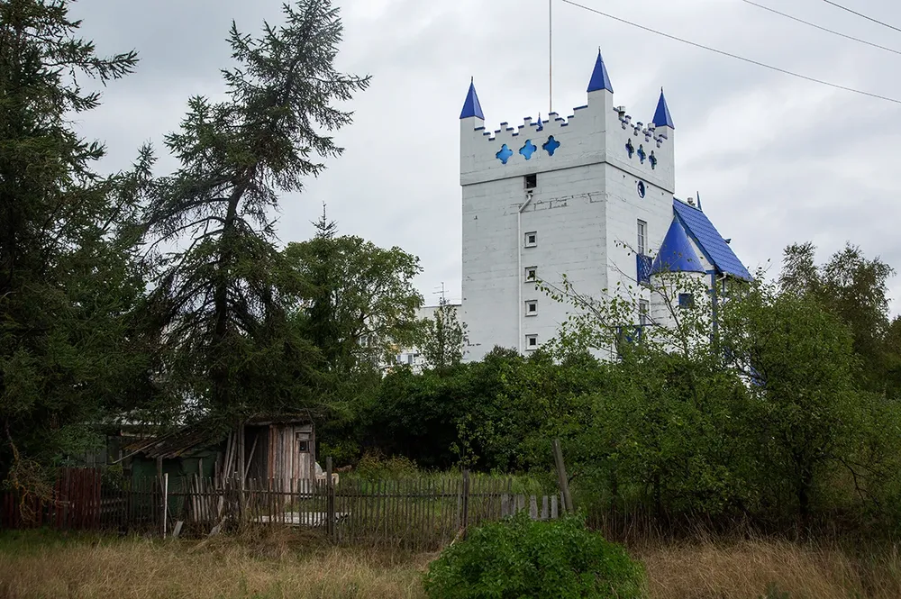 Когда выезжаешь из мегаполиса, в котором прожил всю жизнь в неизвестном направлении, то появляется просто путь, но отсутствует цель. Сознание рисует образы мистического среднерусского Средневековья. В густых лесах обитает неведомая хтонь, сумасшедший дед мастерит из бревен детей и выставляет их вдоль дороги — это одна из местных легенд. На деле же мы получили русскую эклектику, соединяющую в себе голубятню и лубочный киберпанк. Что может твориться в голове у человека, украшающего нишу своего частного дома, похожего на диснеевский замок, белым алебастровым бюстом Ленина? LED-панели на кирпичных советских универмагах сообщают о скидках и призывают что-то купить, а рядом детский синтепоновый пуховик застрял в кустах крыжовника — это уже действительность, с которой мы столкнулись.