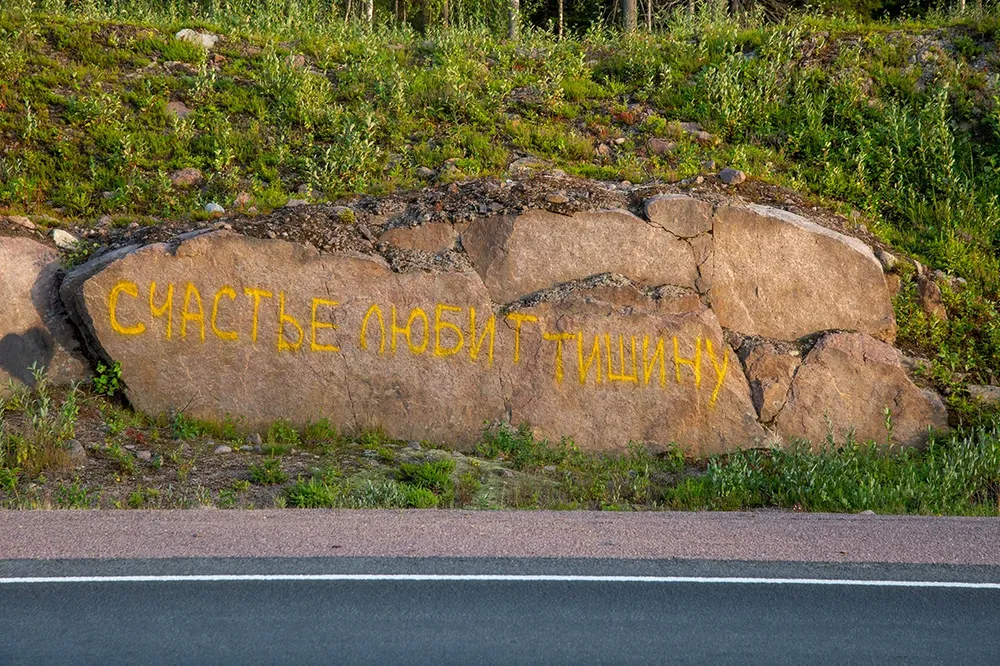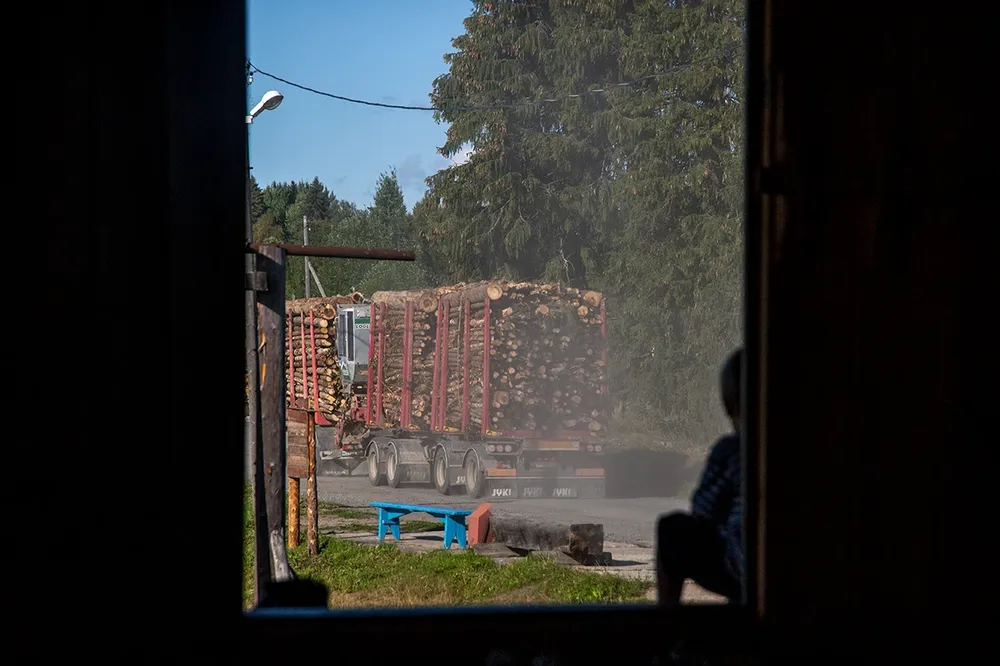 Сумеречная зона находится за вышками древних сосен — через них не проходит 4G-сигнал. Когда-то здесь был ледник, а сейчас восемь домов и церковь, в которой мироточит икона. Корейский автобус высаживает туристов и потомков у церкви. Пока взрослые отдают души своему Богу, который на небе, их дети бегают по старинным надгробным плитам и стараются тихо смеяться. Люди расступаются, чтобы пропустить лесовозы — они от другого бога, который из машины. Знакомое чувство, ведь это Бог, которого мы оставили 12 часов назад.