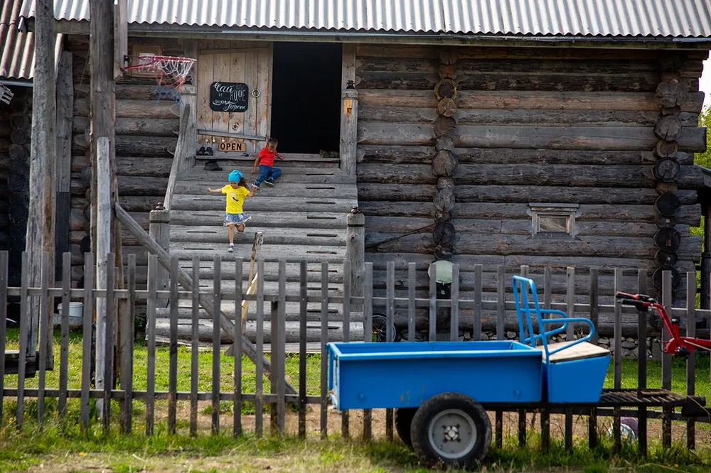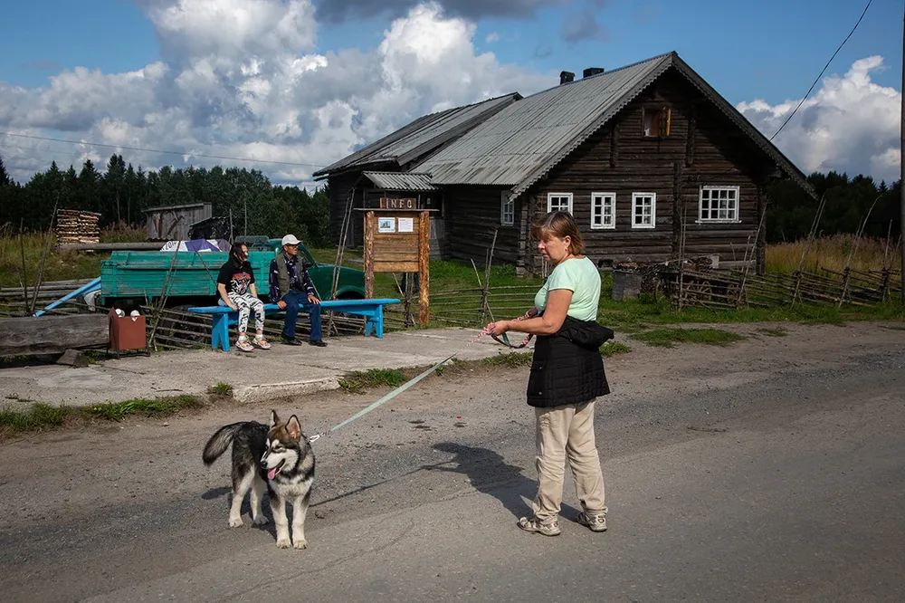 Образ российской деревни в массовой культуре сложно назвать привлекательным. Вы наверняка видели посты в интернете, где полугнилой деревянный дом по окна врос в землю, а под ним подпись, что «это в 15 километрах от Москвы». Экономический спад, урбанизация, русская тоска — это действительно убивает деревню, превращая ее в населенный пункт курильщика. Когда мы отправились на север, то неизвестность заставляла нас играться стереотипными образами русской глубинки. Мы скрещивали лубочную романтику мультиков «Карусель» и гибсоновский киберпанк, искали в полуразрушенных совхозах следы линчевского безумия. Но в реальности нас встречали только сонные собаки, дома с пластиковым сайдингом и густые леса, где ничего нет, но так хочется, чтобы было хоть что-то мистическое. Но Кинерма оказалась совершенно особым местом.