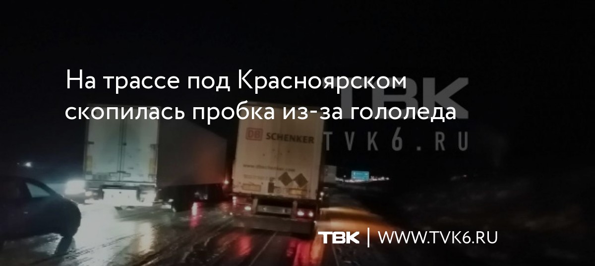 На трассе под Красноярском скопилась пробка из-за гололеда