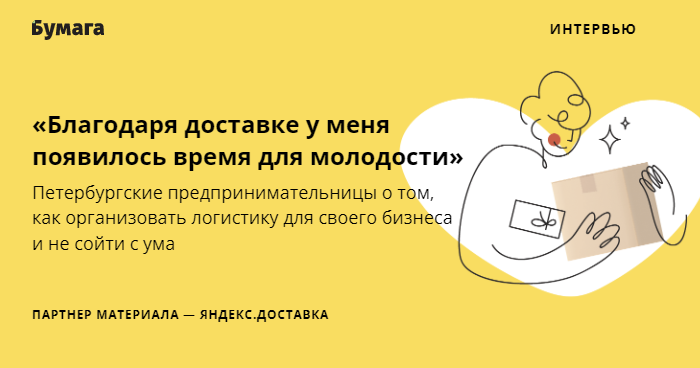 Каково поскользнуться, держа в руках коробки с тортами, доставить букет зимой и отправить платье из советской ткани на дальний конец Земли? Для партнерского материала с «Яндекс.Доставкой» «Бумага» поговорила с петербургскими предпринимательницами о том, как доставка помогает их бизнесу.