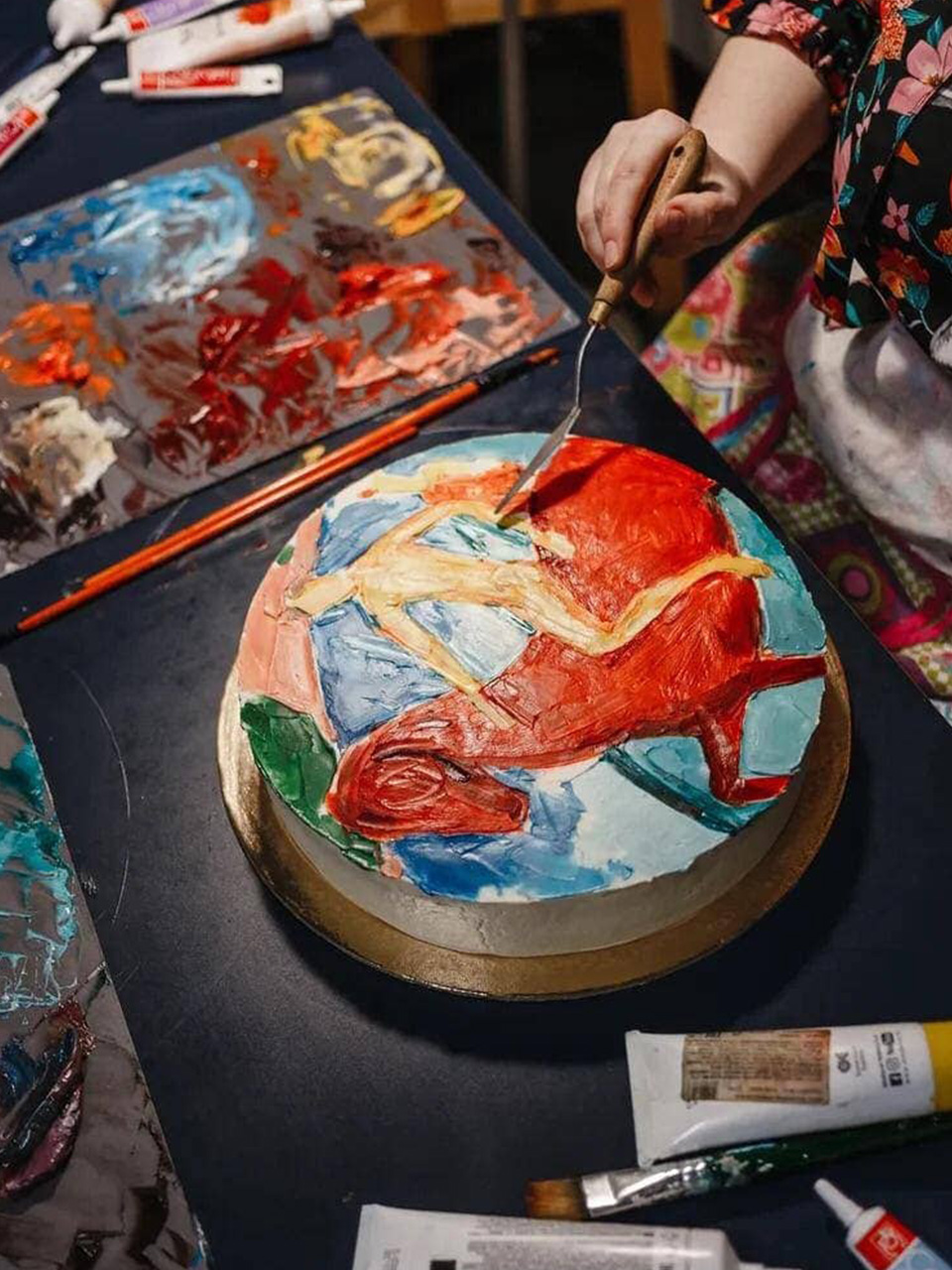 — «МАРФА» — союз художника и кондитера. Мы уже более шести лет создаем эксклюзивные торты: разрабатываем начинки и пишем на тортах картины — как маслом по холсту, только кремом по торту. В команде кондитер отвечает за качество и вкус торта, художник — за внешнее оформление, а я занимаюсь общим руководством и веду крупные заказы.