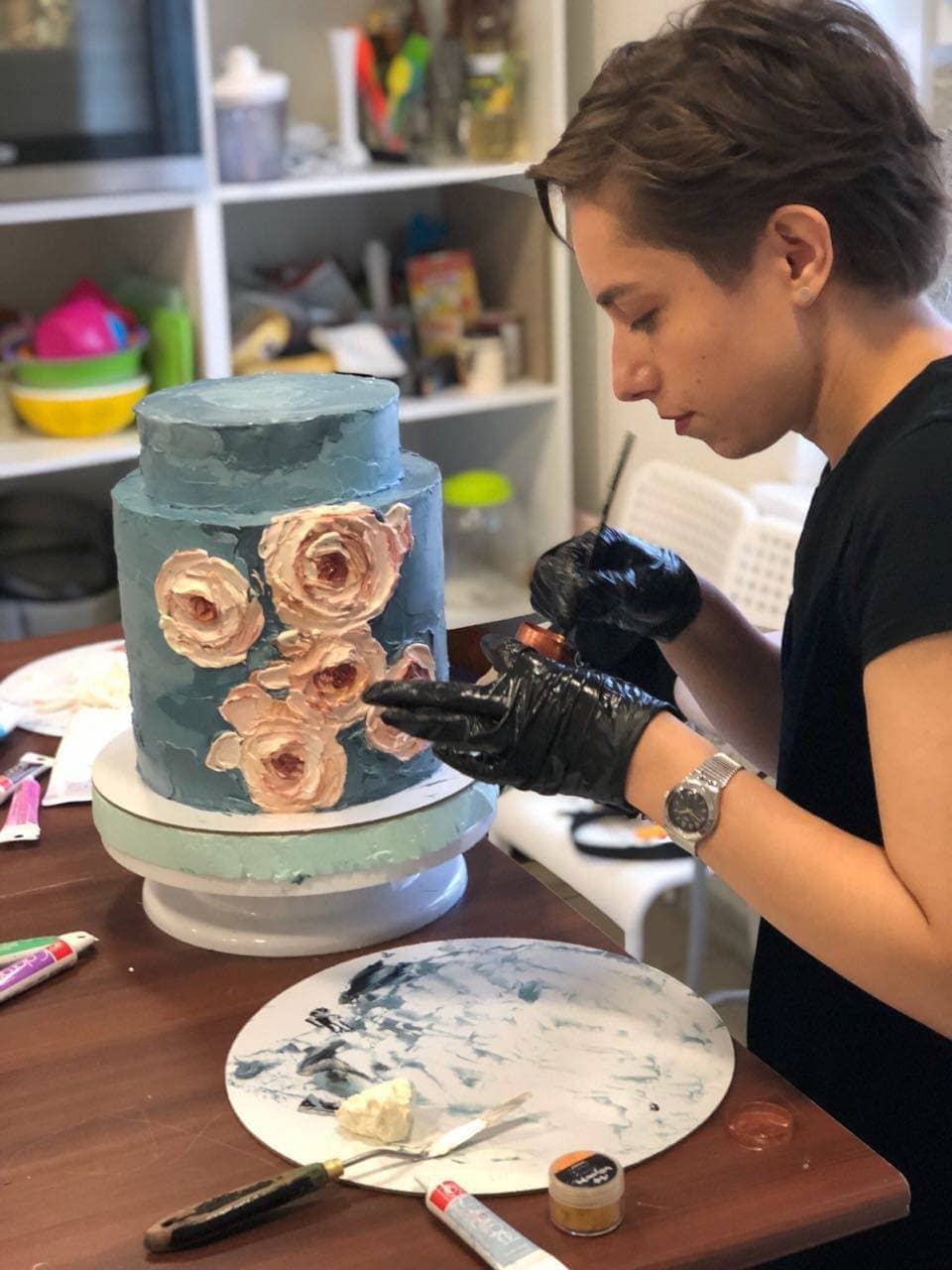 Со временем понимаешь, что свадебный торт, пусть и дорогой — это всего лишь торт. Даже если он сломается, никто не умрет. Поэтому в критических ситуациях мы с моей командой включаем холодный ум и думаем, что можно сделать. На свадьбы везем с собой крем и краски на случай если вдруг на торте появится трещинка и нужно будет ее замазать. Недавно я пригласила на мастер-класс нашего водителя Татьяну и научила ее работать кремом по торту, так что теперь она во всеоружии.