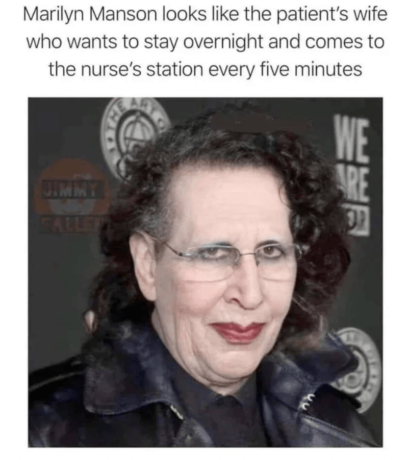 Фотография стала поводом для шуток о скоротечности времени и старости рок-музыканта. Его сравнили с «типичными старушками» — от учительниц и медсестёр до дальних родственниц. Некоторые даже предложили новые названия для песен Мэнсона, которые больше бы подходили его образу: Sweet Kids (Behave Like this) («Милые детишки, так себя и ведите») или Cook4Me (Kitchen Upside Down) («Приготовь для меня. Кухня вверх тормашками»).