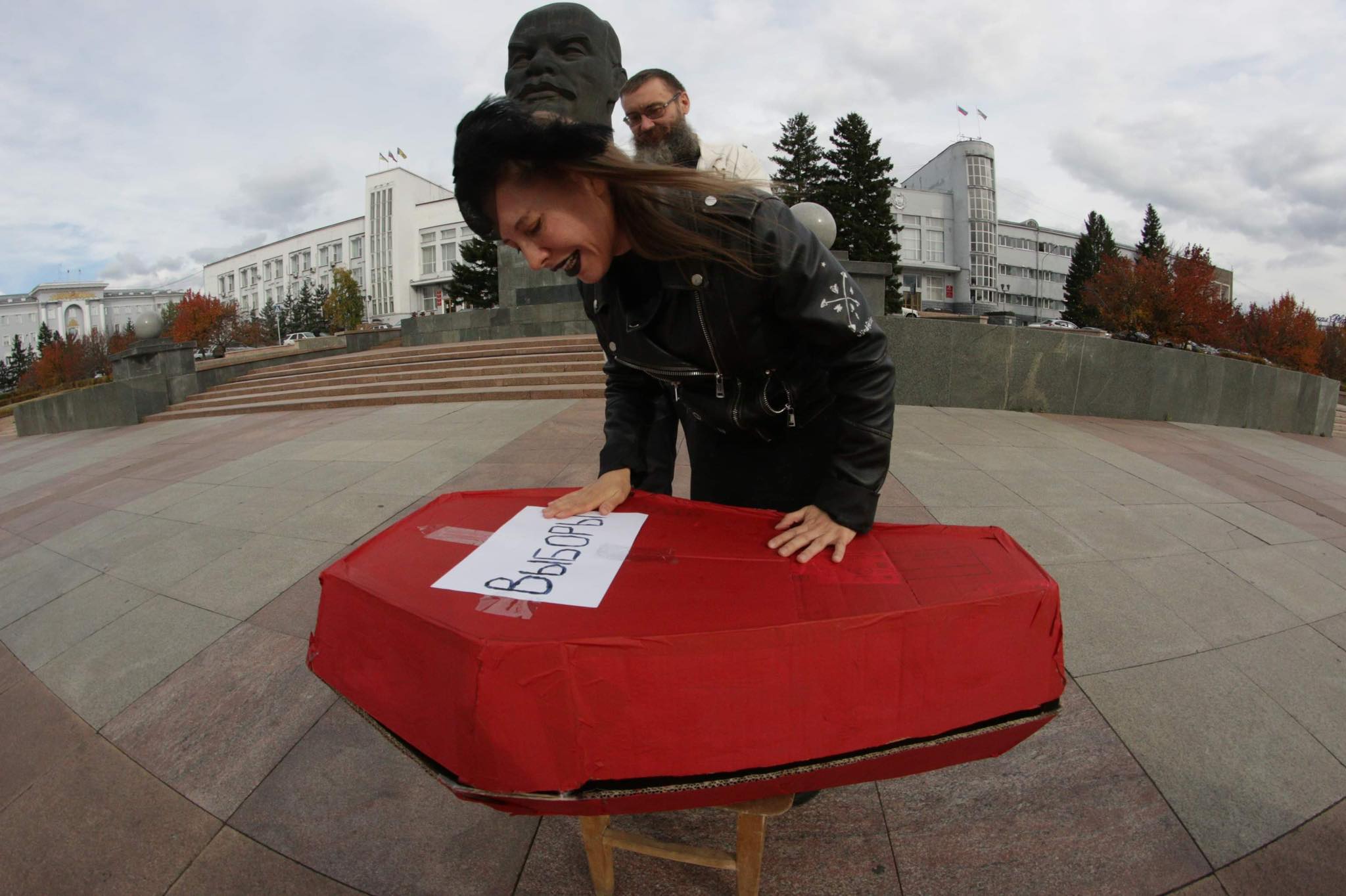- В сентябре активисты Дзержинско-Калининской комсомольской ячейки провели перфоманс в знак протеста против результатов выборов в Государственную Думу. Они выкопали яму, куда опустили ящик с надписью "Выборы".