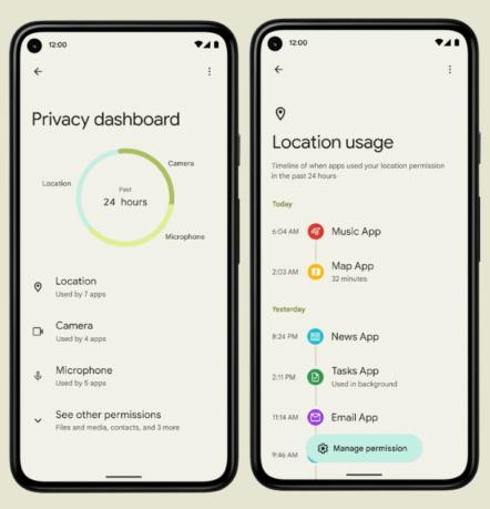 Новая версия Android получила единый интерфейс Privacy Dashboard для управления правами доступа приложений. Также в нём можно посмотреть, какие программы обращались к микрофону, камере и географическому местоположению, когда и по каким причинам.