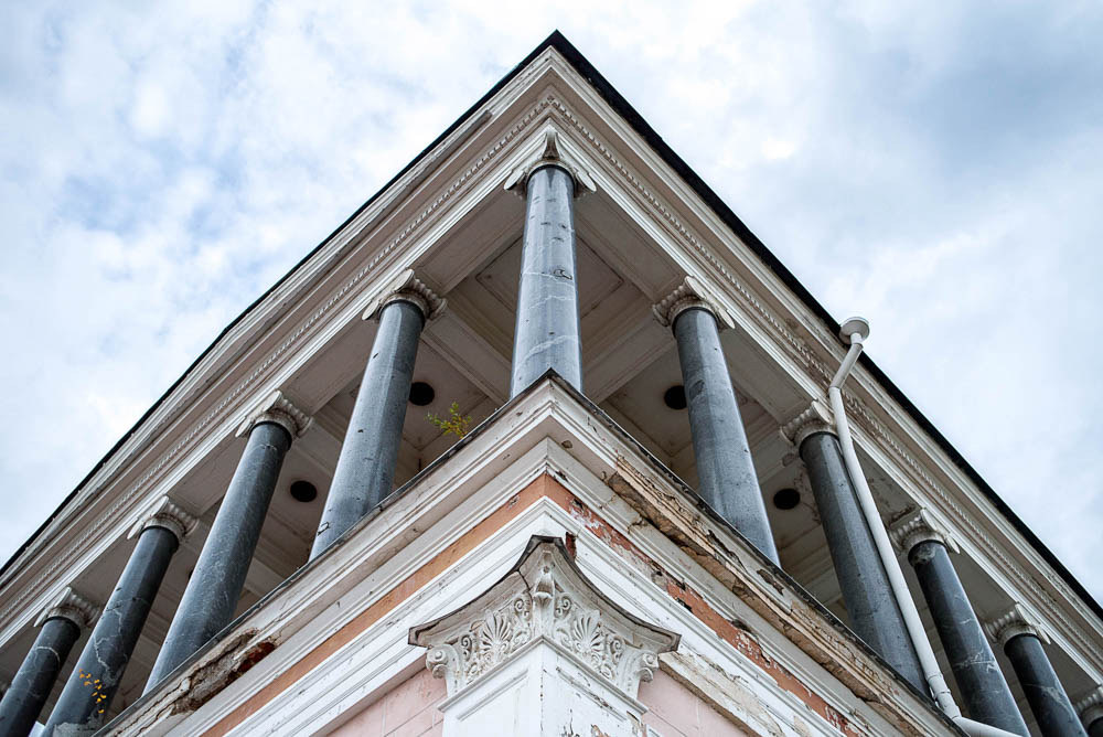 Сейчас дворец Бельведер снова пустует, как когда-то в 1990-е, и медленно приходит в упадок. У здания висит объявление «Проход запрещен! Возможно падение элементов конструкции», но это не останавливает посетителей — люди поднимаются по ступеням и гуляют среди кусков обвалившейся лепнины и сломанных водосточных труб. В начале октября «Бумага» побывала у дворца и увидела в окнах, что пол внутри тоже засыпан штукатуркой и краской.
