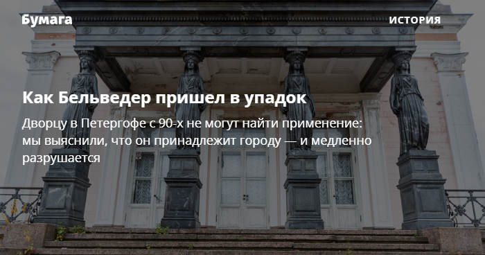 Некоторые считают, что Бельведер разрушается, поскольку его передали в частные руки. Как выяснила «Бумага», это неправда — согласно выписке из Росреестра, дворец всё еще находится в собственности Петербурга.