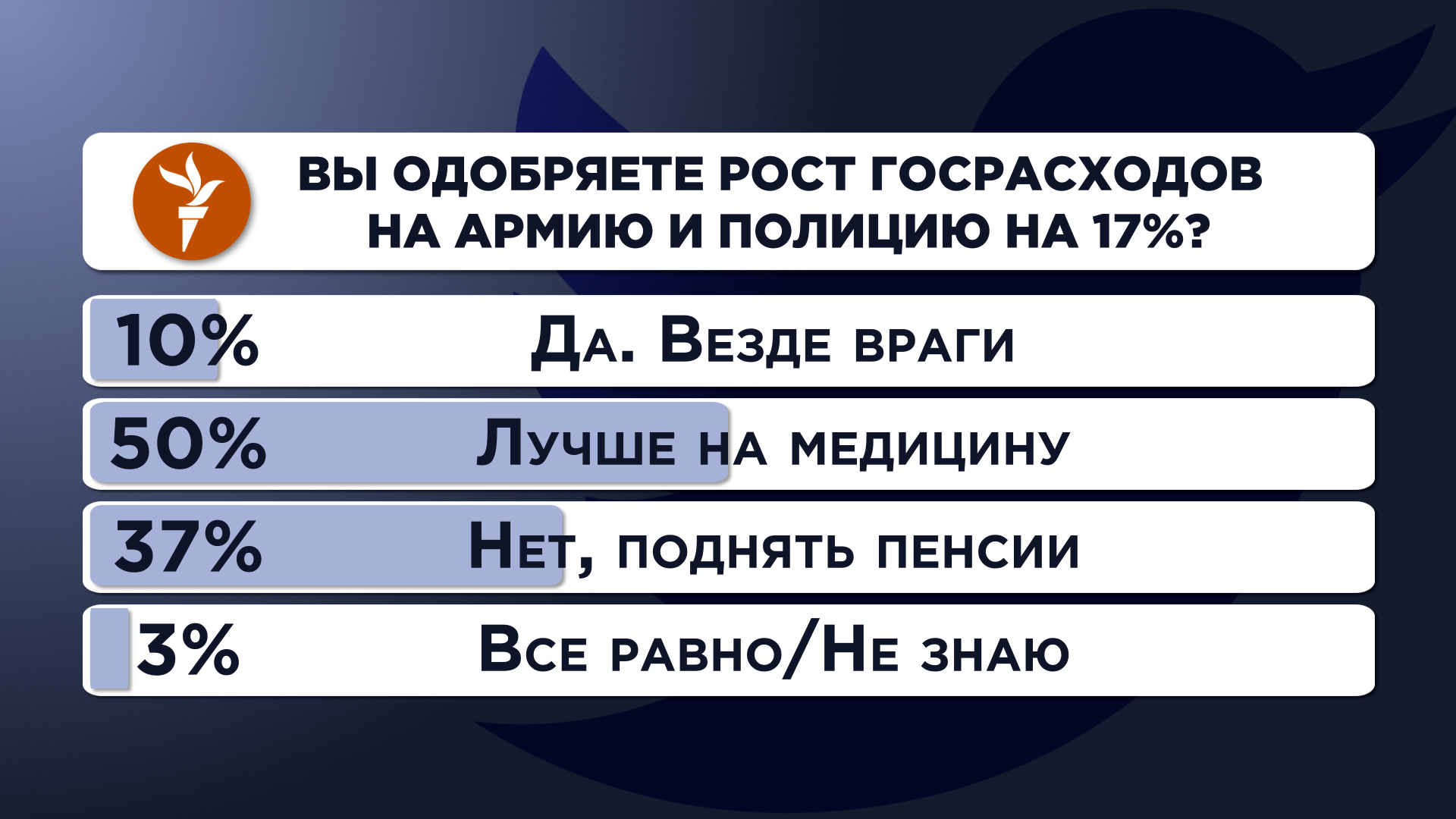 Михаил Соколов: Я сейчас должен по нашему сценарию показать опрос, вернуться к бюджетной теме, как граждане относятся к планам урезать социально-медицинские расходы и увеличить военно-полицейские.
