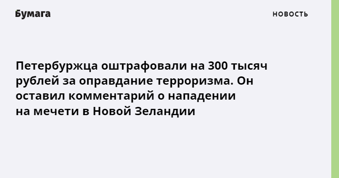 Петербуржца оштрафовали за оправдание теракта в Новой Зеландии