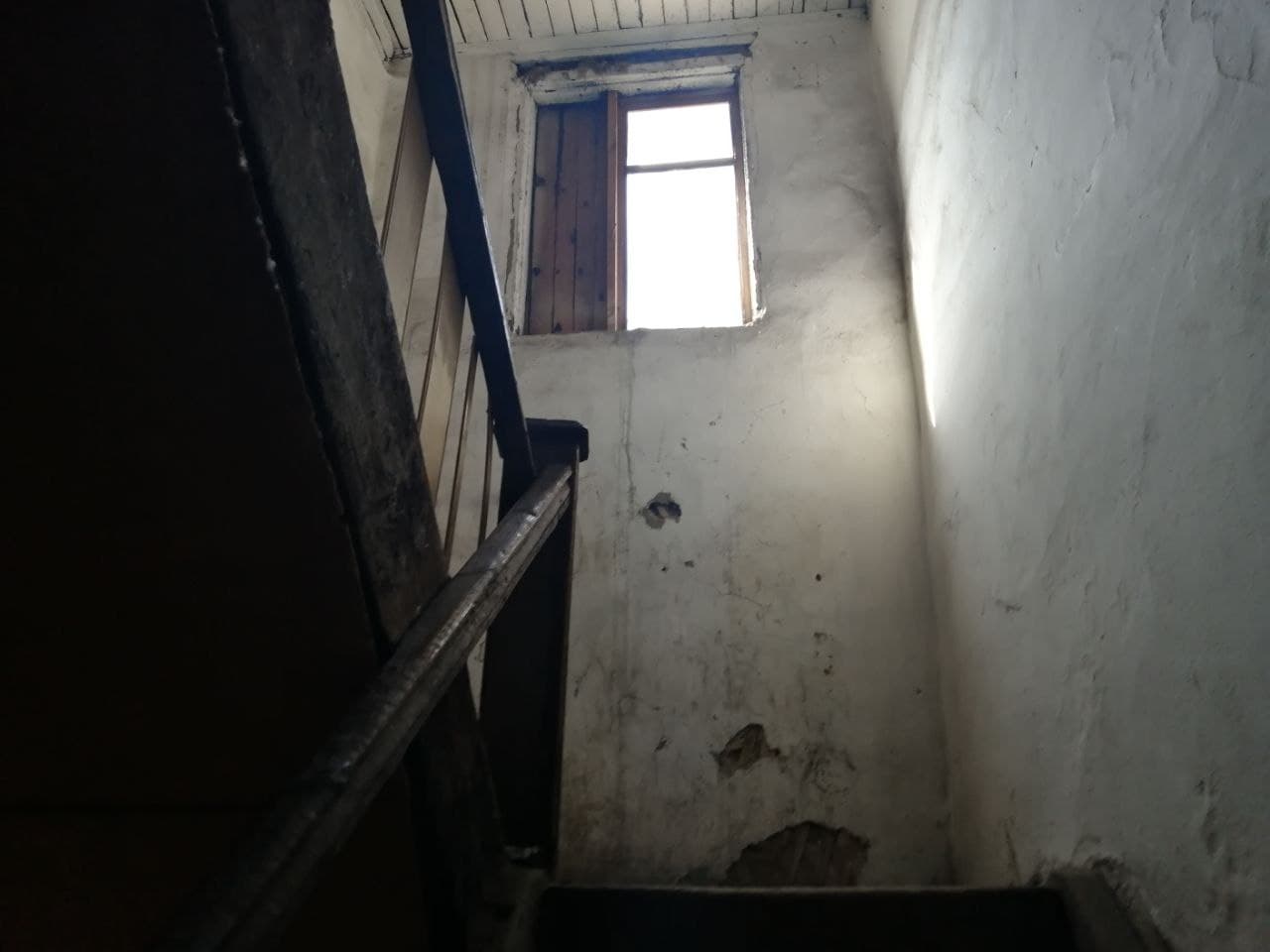 Даже жарким днём в +30 на улице в доме холодно и темно, как в склепе. Деревянные стены давно уже не греют, а полы и вовсе сгнили.