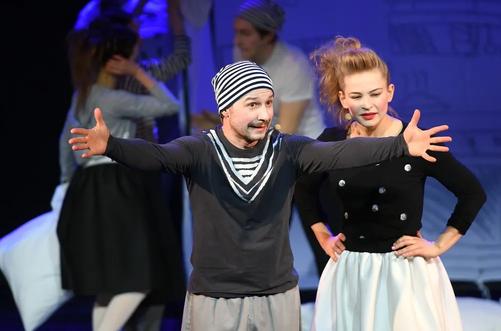 Павел Акимкин и Юлия Пересильд в сцене из интерактивного спектакля для детей «СтихоВаренье». Спектакль был создан с целью поддержки благотворительного фонда «Галчонок». Фото: РИА Новости