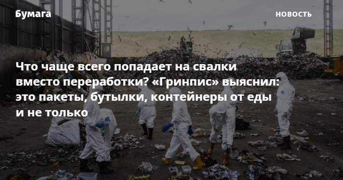 Российское отделение «Гринписа» провело исследование на мусоросортировочных станциях и рассказало, что чаще всего попадает на свалки вместо переработки. Результаты сообщили «Бумаге» в пресс-службе экологической организации. Подробнее читайте здесь.