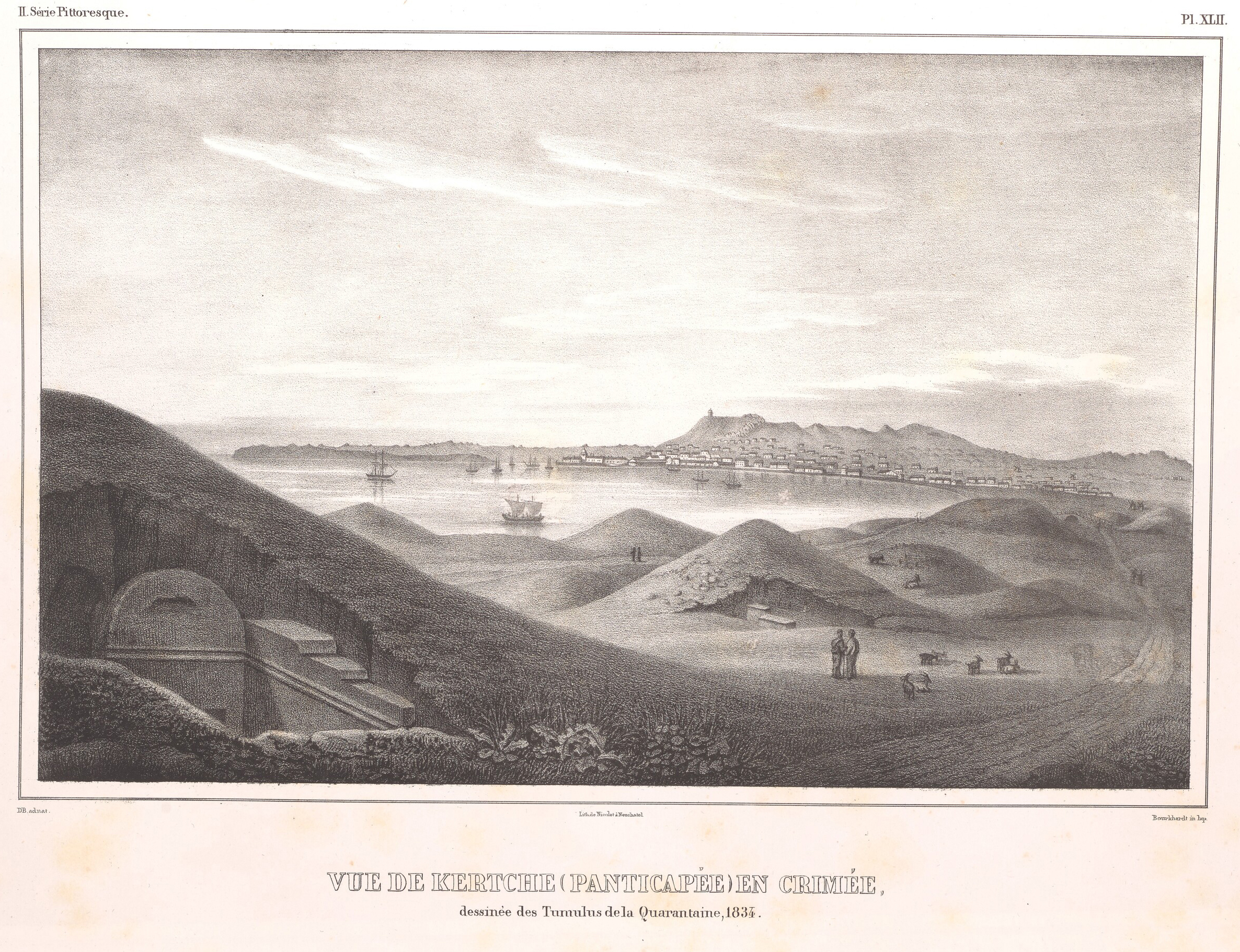 Слева на рисунке виден вход в один из нескольких древних курганов в Керчи.