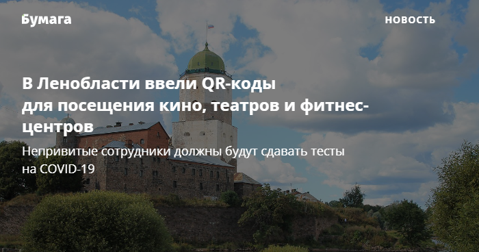В Ленобласти ввели QR-коды для посещения кино, театров и фитнес-центров. Непривитые сотрудники должны будут сдавать тесты на COVID-19