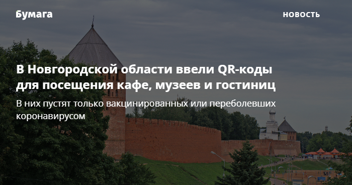В Новгородской области ввели QR-коды для посещения кафе, музеев и гостиниц. В них пустят только вакцинированных или переболевших коронавирусом