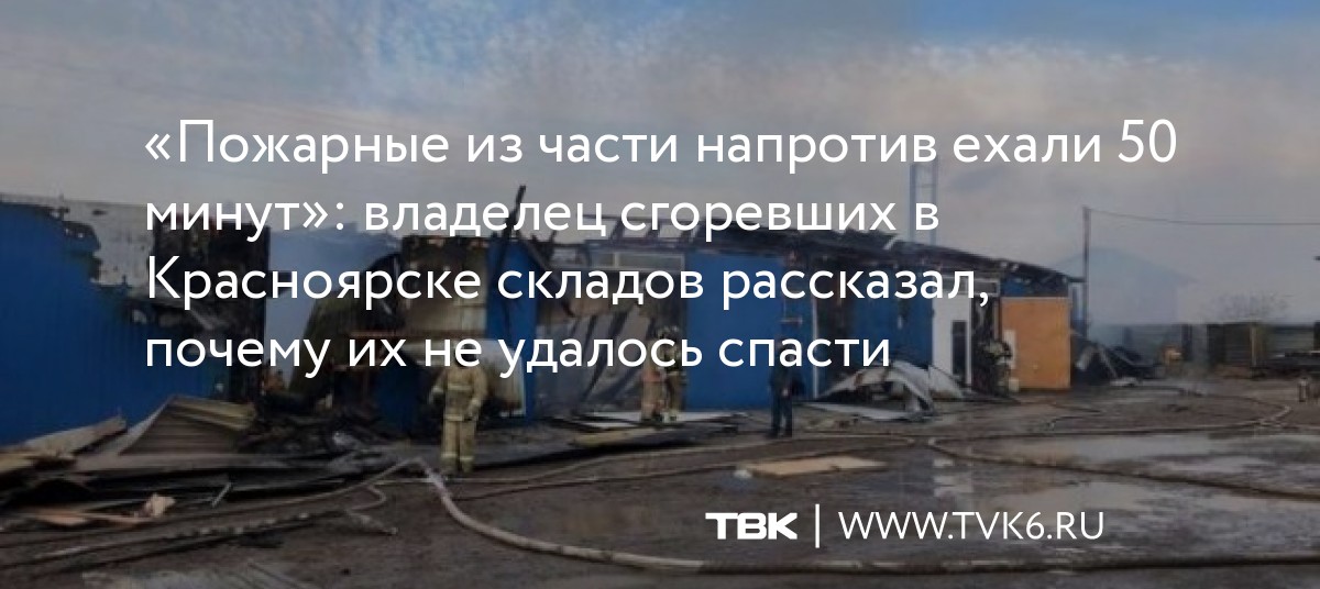 «Пожарные из части напротив ехали 50 минут»: владелец сгоревших в Красноярске складов рассказал, почему их не удалось спасти