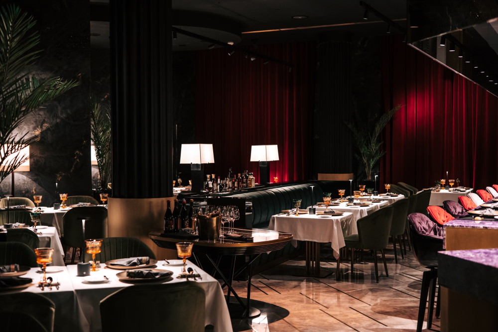 Исторические интерьеры оформили с использованием драгоценных и полудрагоценных камней и минералов из Сибири и с Урала: мрамора, кварцита, оникса и других. Заведение разделили на несколько зон: кафе открыто с 12:00, ресторан — с 17:00 до 1:00.