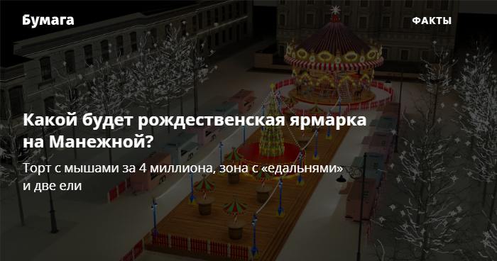 По подсчетам «Бумаги», на организацию рождественской ярмарки потратят более 50 миллионов рублей.