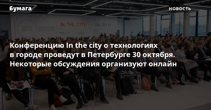 Конференцию In the city о технологиях в городе проведут в Петербурге 30 октября