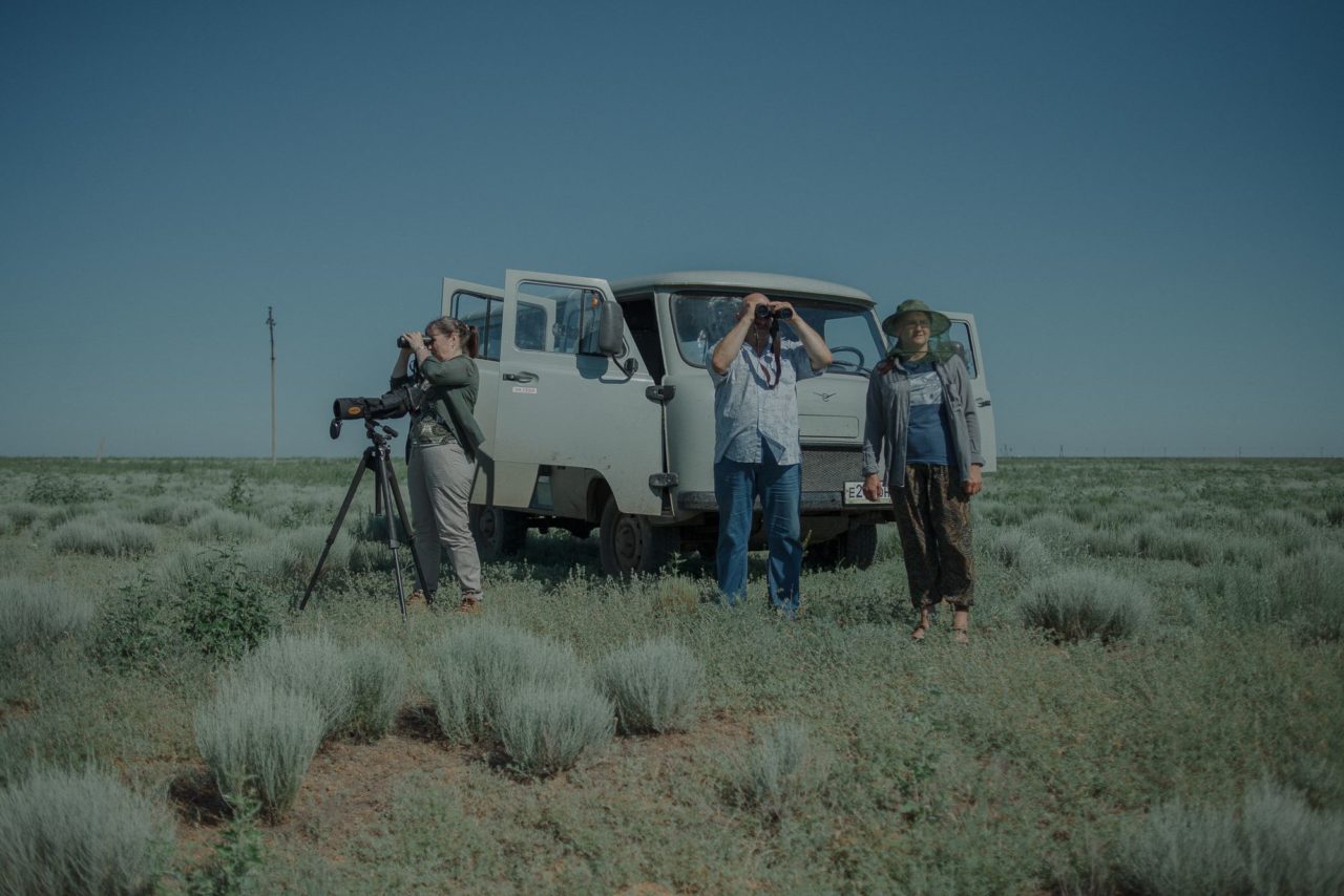 Орнитолог Елена Гугуева, водитель Равиль Махмудов и биолог Ирина Кушакова наблюдают за птицами в районе ерика ЦаревочкаФото: Сергей Карпов для ТД