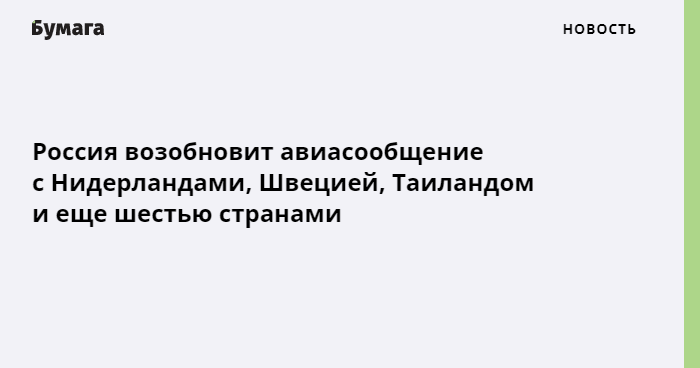 С 9 ноября снимаются ограничения на авиасообщение с Австрией, Швейцарией, Финляндией и ОАЭ. В этот же день возобновится взаимное сообщение с девятью государствами: Багамами, Ираном, Нидерландами, Норвегией, Оманом, Словенией, Тунисом, Швецией, Таиландом. При этом россиянам всё еще нужно будет учитывать требования принимающей страны, посещение будет возможно лишь при наличии документов о вакцинации от коронавируса.