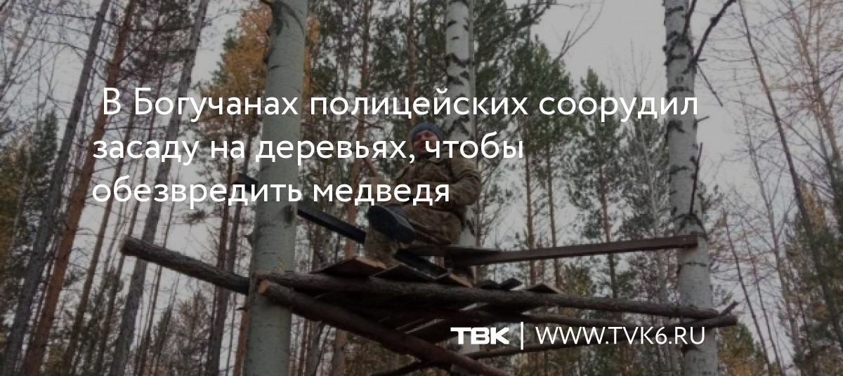 В Богучанах полицейских соорудил засаду на деревьях, чтобы обезвредить медведя
