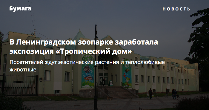 В Ленинградском зоопарке заработала экспозиция «Тропический дом». Об этом пресс-служба учреждения сообщила в инстаграме.