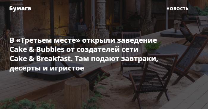 В пространстве «Третье место» на Литейном проспекте, 62 открыли новое заведение от создателей сети Cake & Breakfast — Cake & Bubbles, сообщили «Бумаге» представители проекта. Кафе специализируется на завтраках, которые здесь подают в течение всего дня.