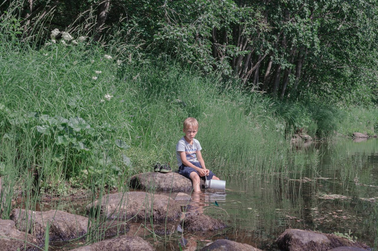 Тропинка кончилась, началось болото. И единственный вариант, который нам оставался, — разуться (благо река была по щиколотку) и пойти вброд по реке. Мне пришлось Васю за руку взять — там каменистое дно. И я очень, очень сильно боялась, что Вася запаникует, ведь человеку с аутизмом сложно воспринимать изменение планов. Боялась, что он начнет вырывать у меня руку, он же больше меня, мы потеряем равновесие, а если он упадет, а если мы упадем вместе?