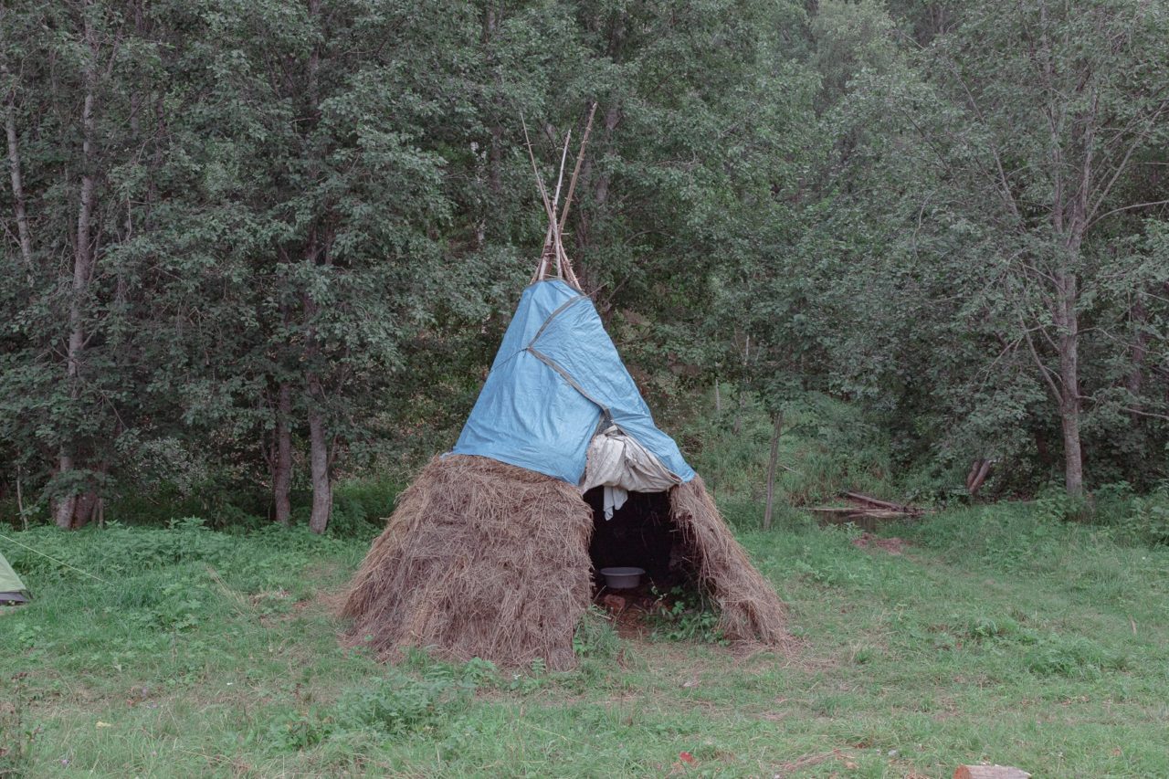 Шалаш в лагере. В теплую погоду участники лагеря любят здесь отдыхать, пить чай и петь песниФото: Екатерина Чурбакова Сейчас он живет не в психоневрологическом интернате, а на квартире в проекте сопровождаемого проживания — и встал в очередь на собственное жилье. Скоро будет жить отдельно.