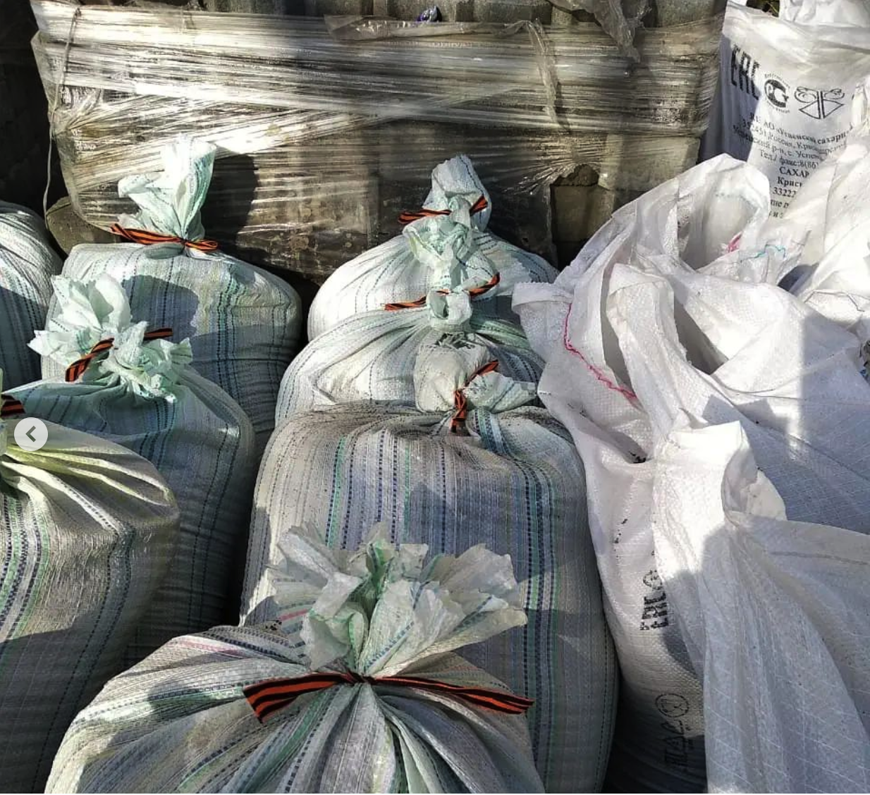 На Алтае СК начал проверку из‑за фотографии мешков с песком, завязанных георгиевскими ленточками