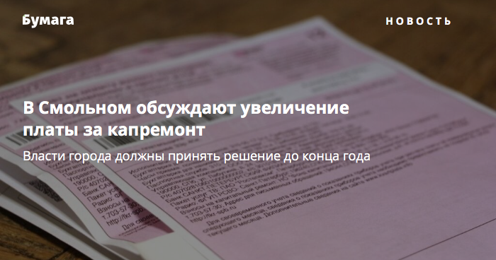 Год назад Смольный поднял плату за капремонт на 3 рубля. В настоящее время она составляет 11–12 рублей за квадратный метр (в зависимости от вида дома).