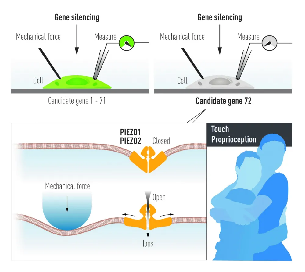 В этих исследованиях независимо участвовала и группа Ардема Патапутяна. Исследования этой группы ученых постепенно сместились в область изучения того, как давление может вызывать боль, какие молекулярные механизмы лежат в основе этой важнейшей для выживания организма рецепции. Им удалось найти клеточную линию, особенностью которой являлась хорошо измеряемая электрическая реакция на давление.