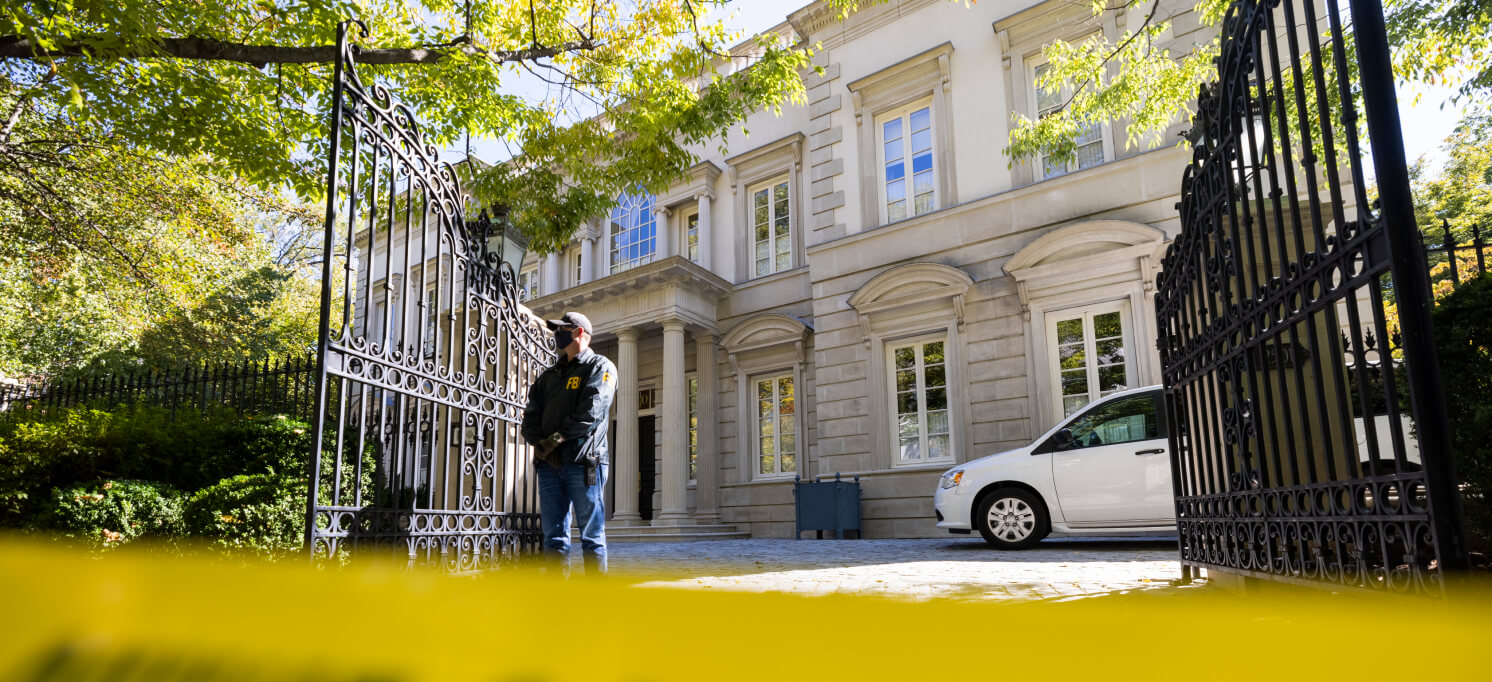 Первый обыск прошел в одном из самых дорогих особняков в Вашингтоне, купленном за $15 млн в 2006 году у вдовы миллиардера Герберта Хафта. Дом имеет площадь 23 000 квадратных футов (около 7 тысяч квадратных метров), где располагается семь спален с итальянскими мраморными полами и люстрой, которая когда-то висела в Парижской опере. Особняк также включает в себя кинотеатр в подвале, коммерческую кухню и столовую на 16 мест. Среди соседей владельца особняка — советник экс-президента США Дональда Трампа Келлиэнн Конуэй и близкий советник Билла Клинтона Вернон Джордан.
