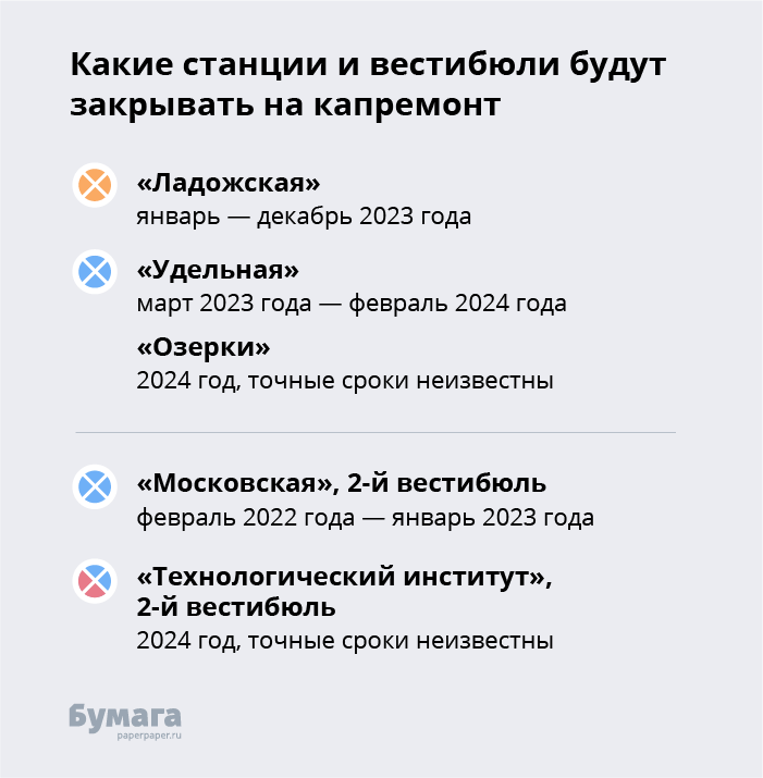 «Бумага» собрала в одной картинке сроки закрытия на капремонт пяти станций.
